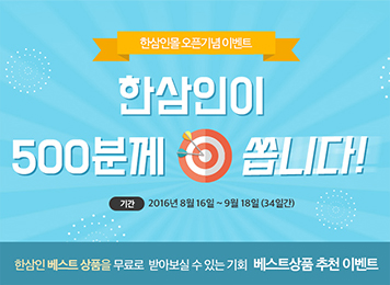 ÇÑ»ïÀÎÀÌ 500ºÐ²² ½õ´Ï´Ù 2016.08.13 ~ 2016.09.18